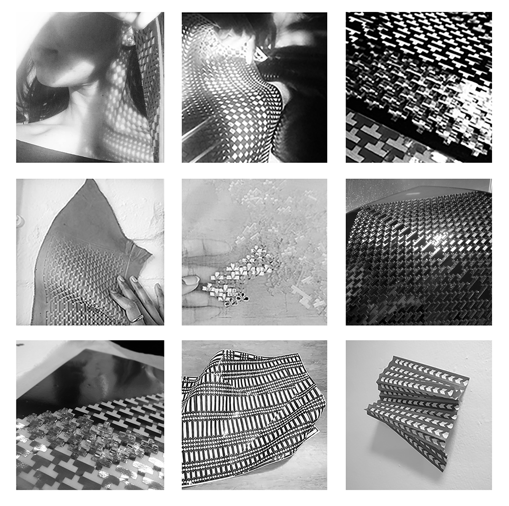 Explorations in light, shadow, opacity and transparency. Disruption of patterns on forms in hard and soft materials using a range of techniques from hand-embroidery, embossing, laser cutting to heat-press printing.